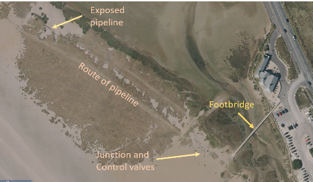 Today the route of the pipeline is still clearly visible. The initial route across the Fleet can be seen in recent Channel Coast Observatory pictures.