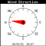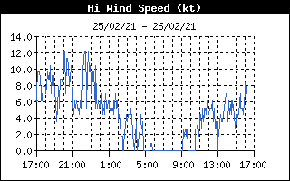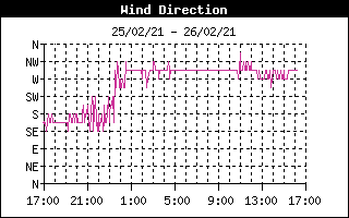 These plots show the wind gust and direction, barometer and rainfall for the last 24 hours. wind speed and direction and outside temperature:
