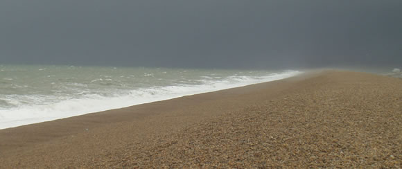 It is above all an elemental place, made of sea, shingle and sky, its dominant sound always that of waves on moving stone: from the great surf and pounding “grounds of seas” of sou’westers, to the delicate laps and back-gurgling of the rare dead calm….