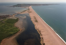 The southern end of Chesil Beach looking from the Narrows towards Portland